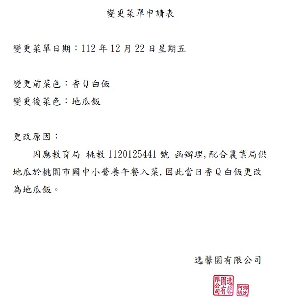 菜單變更公告