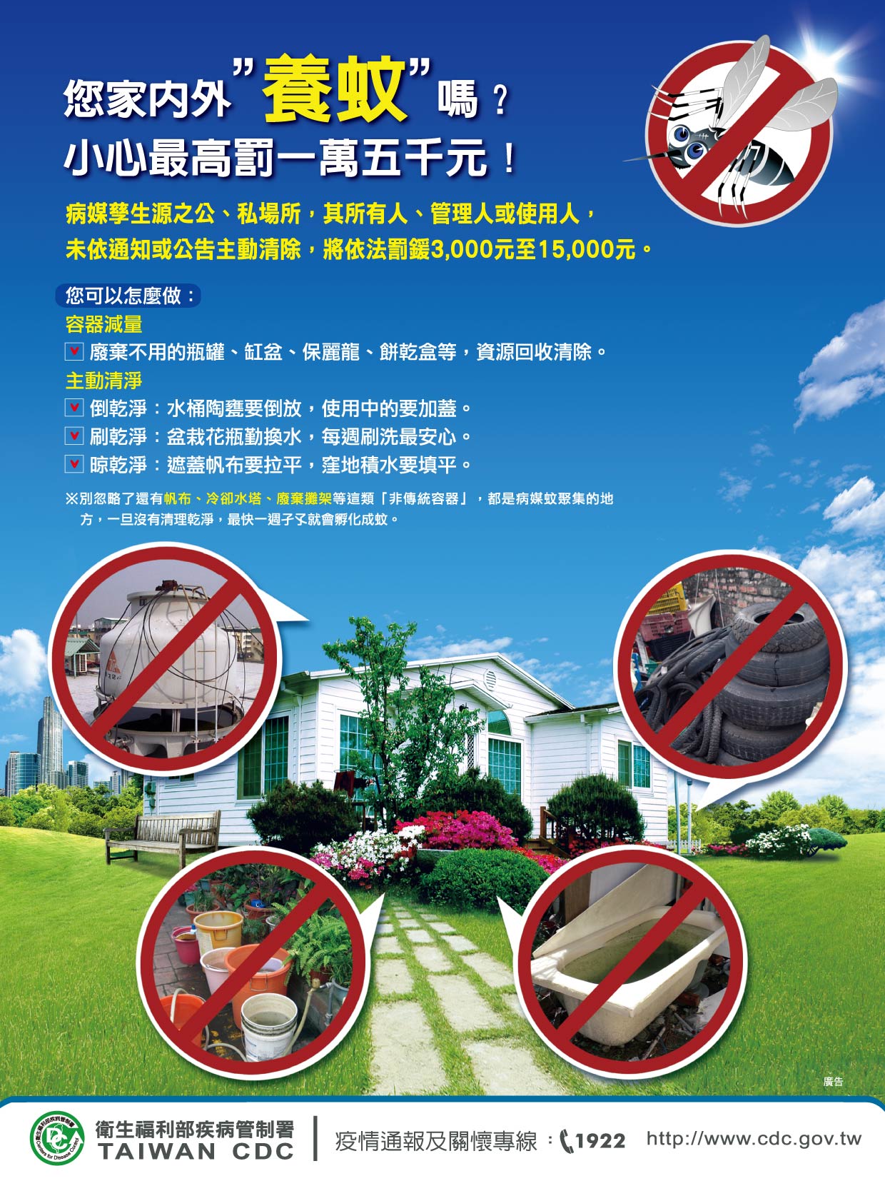 因應本土登革熱疫情持續,請留意生活孳生源,症狀不輕忽,就醫不延誤。